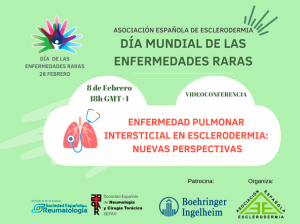 La Asociación Española de Esclerodermia, en el marco del Día Mundial de las enfermedades raras, organiza un webinar sobre enfermedad pulmonar intersticial en esclerodermia. Nuevas perspectivas. Acceso a través de este enlace.